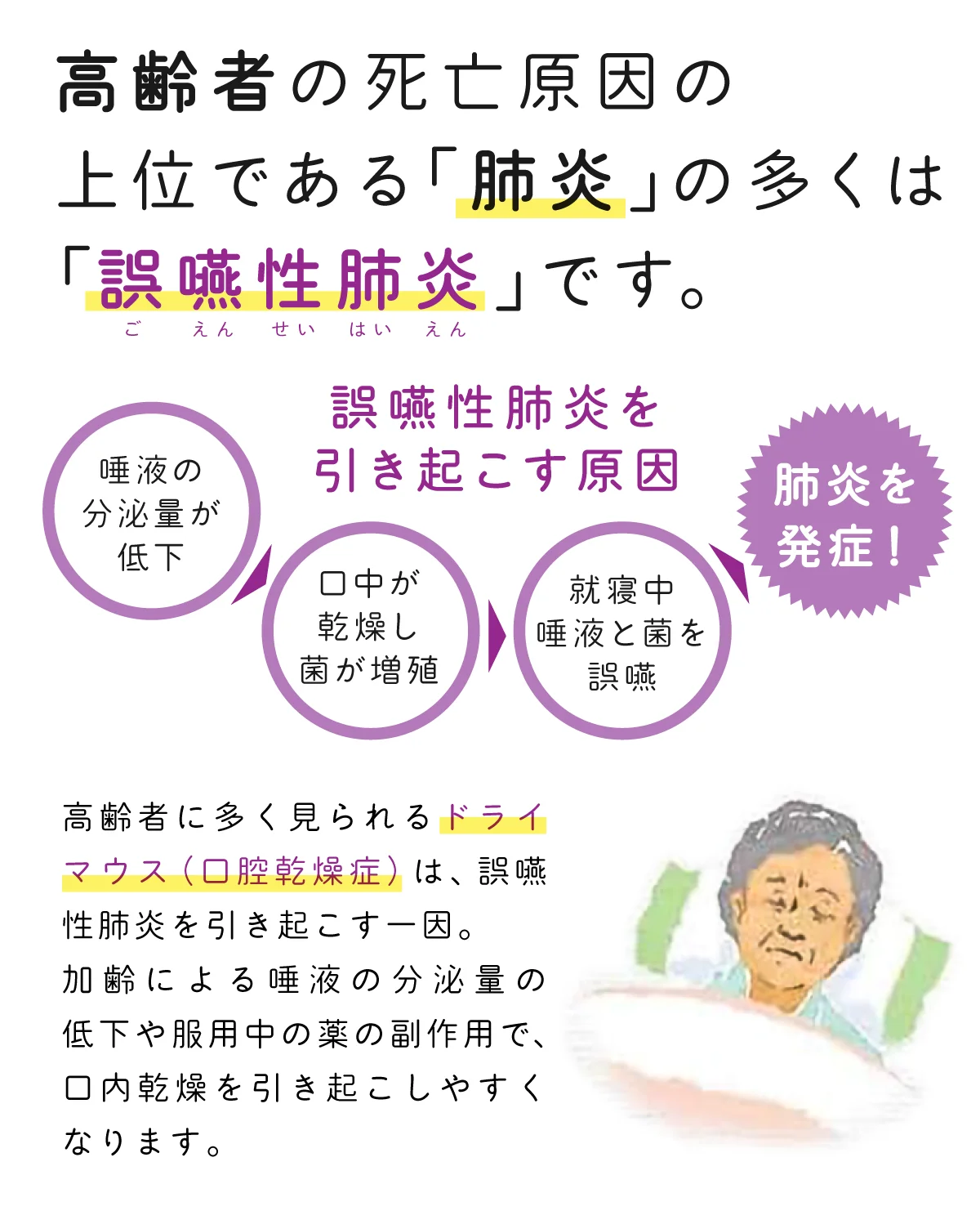 体力や抵抗力が弱っている人にとって、口の中の細菌は大敵です。