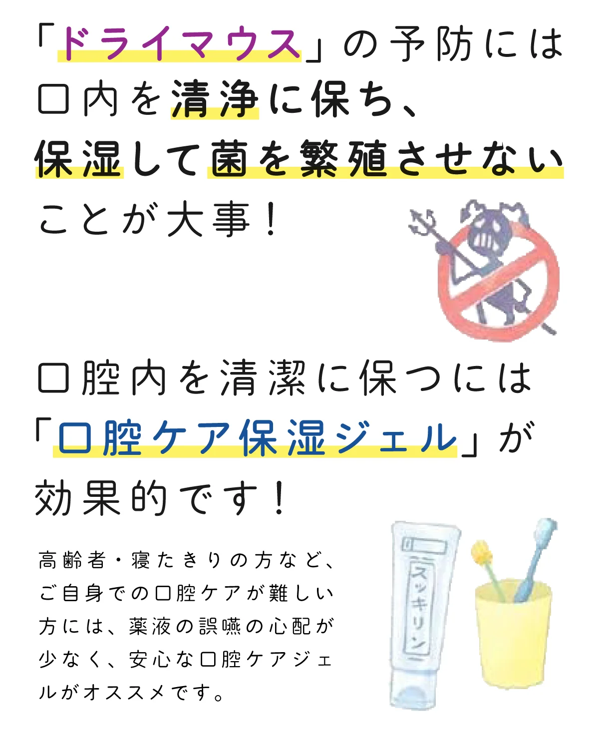 うるおいを与え、ドライマウスを予防します。